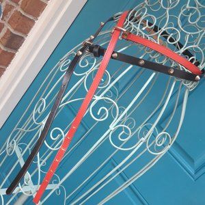 Belts could be used as jewelry, replacement purse strap, gothic home decor or to accentuate a hat. Red belt is vintage belt and black studded belt appears to be newer modern metal studs gtommets rivets western belt rodeo cowboy gtunge gothic medieval boho genuine leather biker belt for women men or unisex.