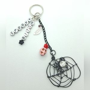Witch B* has skull and spiderweb combo with red beads.