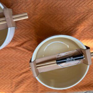 (2) Big Bowls and Chopstick Set with Designs on the Front & Back