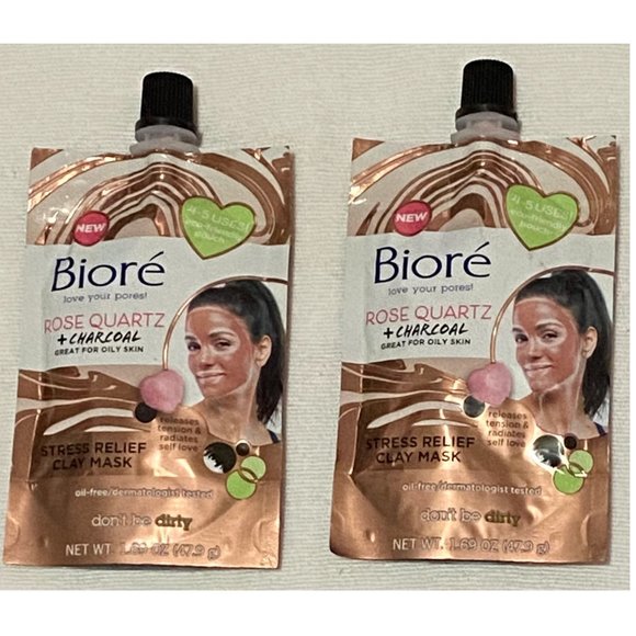 2 Bioré De-Stressing Clay Mask eliminates toxins, conditions and purifies your pores while adding some self love. Rinse away stress for soft, smooth skin that radiates energy & happiness. Crystals have been known for centuries for their unique healing powers. Rose Quartz, a natural crystal, is known as the stone that radiates self love and care.DE-STRESSING CLAY MASK: Deep cleans, releases tension & purifies pores. Use 2-3x per week. 4-5 uses per pouch. #1 CHARCOAL CLEANSING BRAND: With Natural Charcoal, known for its ability to draw out impurities and trap them. WITH ROSE QUARTZ: Infused with Rose Quartz, the love crystal, radiates self-love and care Dermatologist tested, Hypo-Allergenic, Non-Comedogenic, Oil Free, Vegan Friendly, Cruelty Free, Paraben Free
