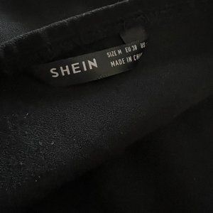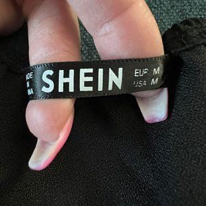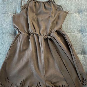 2 Bkack Short rompers. 1 Romper has a halter top and the other has a V Neck. Both are adjustable and made out of Polyester. Both in great condition Both are Mediums