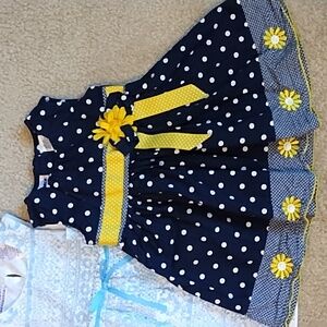 2 Blueberi Boulevard Dresses Girls 18 Months Lace Polka Dots Blue Yellow White