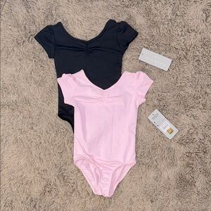 Charming Danskin bodysuits in black and light pink. Soft fabric for all-day comfort. Perfect for play and dance.