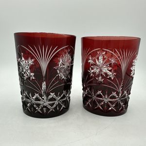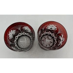 Includes both glasses as shown: AJKA Crystal Cranberry Ruby Red Etched Glasses Winter Holiday, Pattern is RARE. 4.5" tall x 3.5" rim diameter. Gorgeous! Vintage. No damage. Excellent condition. One is slightly lighter red than the other. This is an extremely rare design--very hard to find. Came from a collection. Shipped with great care. Thank you for viewing this item and visiting my closet!