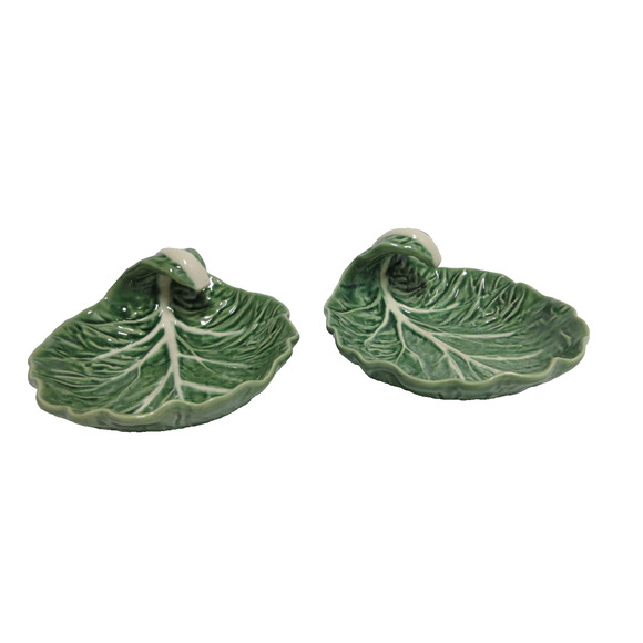 2 Bordallo Pinheiro Cabbage Green Bon Bon Footed Dish 7" Set Vintage Circa 1998