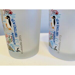 2 Boston Themed Catstudio Frosted Drinking Glasses Dated 2015