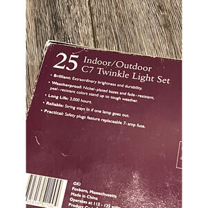 Illuminate your holiday season with this elegant set of 25 C7 Twinkle Christmas Lights. Designed for both indoor and outdoor use, these lights combine vintage charm with modern reliability and durability. I have two boxes that are complete sets and included is an additional box/string of lights that have 4 lights missing, they can be replaced or used.