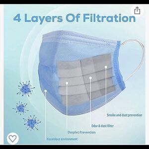 1 Box of 50 Pcs Blue Disposable Face Masks - High Filtration Ventilation 4 Layers (1-Ply Melt-Blown & 3-Ply Non-Woven) for Hygiene Security Protection,White Soft Inner,Comfortable Earloops & Noseclip