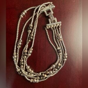 The second is a silver tone with black and silver beads.