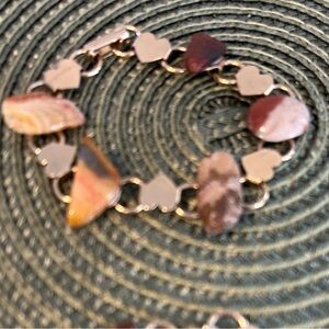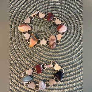 2 Bracelets of Gold Colored Metal Hearts & Beautiful Polished Stones 5.5 & 7.5”.