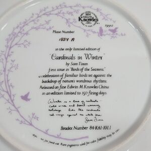 2 Bradex China Plates Ltd Ed. 'CARDINALS IN WINTER' & 'EARLY MORNING RAIN'