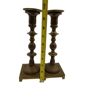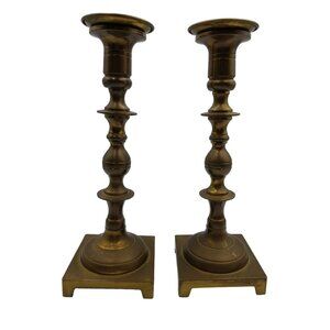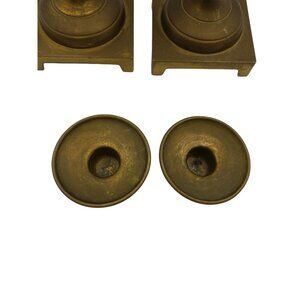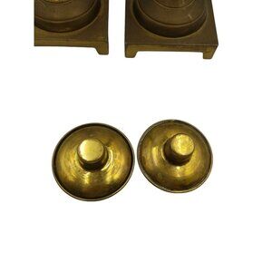 2 Brass Candlestick Holders Square Base Marked W Inc. Brass Plated Shabbat Cups