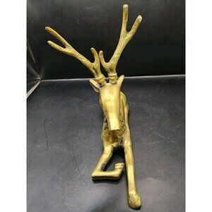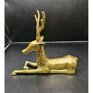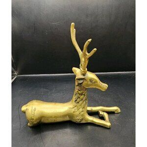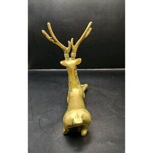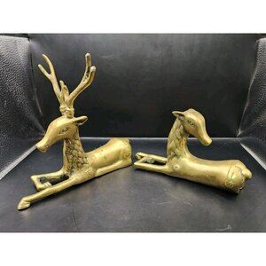 (2) Brass Deer Reindeer Figures Mid Century Modern Buck Doe Laying Down
