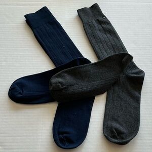 New without tags (2) Brooks Brothers Ribbed Crew Socks in navy /gray , one size
