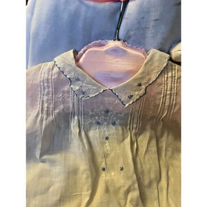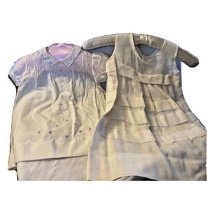 Beautifully made with no stains or holes. The embroidered one measures Shoulders 8.5" chest 11" length 15" the layered one measures shoulders 8.5" chest 11" length 20"
