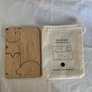 2 CHOMP Ocean & Forest wooden food chain puzzles for ages 3+ w/ drawstring bags