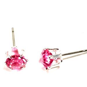 Elevate elegance with these stunning Sterling Silver Overlay 2 CTW pink Stud Earrings. Each earring features a brilliant 2-carat total weight pink stone, exquisitely set in a sterling silver overlay. Designed to catch the light and add a touch of sophistication, these earrings are perfect for everyday wear and special occasions. Whether you're looking for a gift or a timeless addition to your jewelry collection, these pink stud earrings offer a perfect blend of luxury and versatility.