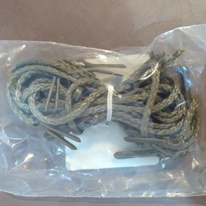 2 United States Gov Issue Camo Net Screening System. Lanyard, Woodlands / Desert. Military. Sealed in plastic bag. High quality braided green rope with 24 clips. 24’ long. 9” spacing in between each clip. Used to attach Camouflage netting OR to attach anything from a clothesline to a deer or duck blind. SP0750-03-F-0148 M10-11/03 See pictures for details. Thanks for visiting our closet and looking 👀
