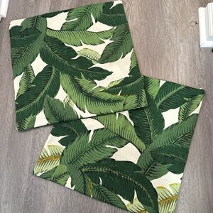 2 Canvas Tropical Green Banana Tree Hawaiian Vacation House Pillow Covers Square