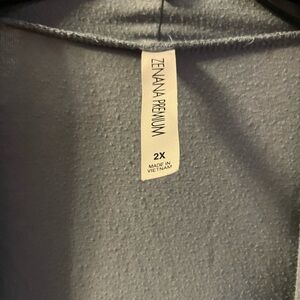 These are shirt like material cardigans. The blueish green is a 3/4 sleeve with pockets and the purple one is a longer length Price for both.