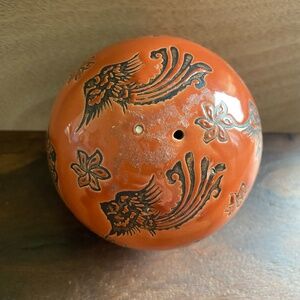 2 Carpet Ball Ceramic Pottery 4" Round Blue Floral Red Birds Glaze Decorative