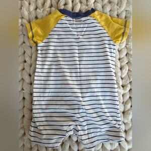 2 Carters rompers. Snap button closure at legs. Front pocket.