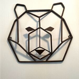 2 Cast Iron Geometric Fox And Bear Face Wall Hanging Metal Head Brown set of two