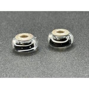 (2) Chamilia Black & White Stripe Sterling Silver Mirano Charms P19