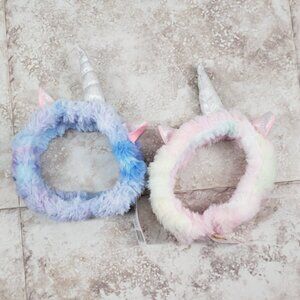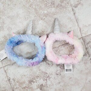 2 Childrens Elastic Faux Fur Fuzzy Hairband Headwrap Metallic Ears Unicorn Horn