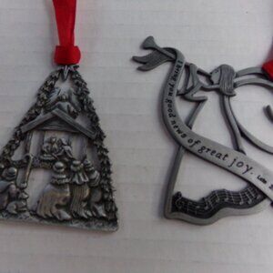 2 Christmas Holiday Decorations Hanging Tree Ornaments Pewter