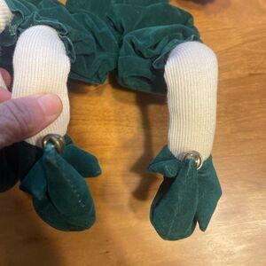2 Christmas Santa Elves Vtg Ornament Shelf Sitter Bendable Fabric Dolls