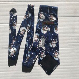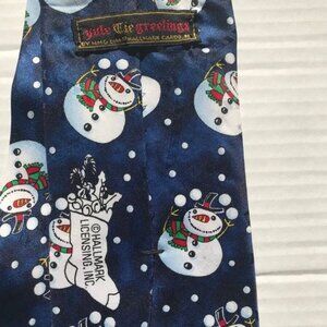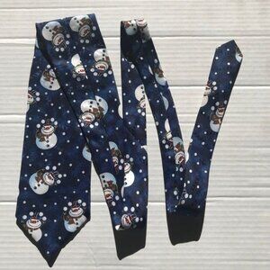 The other tie features snowmen juggling snowballs on a melded dark and royal blue background with images of candy canes. 100% Polyester, 59" x 3.3/4"