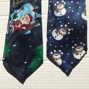 2 Christmas Ties Hallmark & Jingle Bells Brands Santa Snowmen Candy Canes