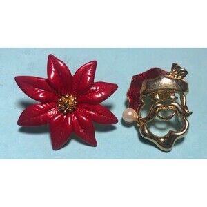2 Christmas brooches or pins-Santa & Poinsettia-EUC