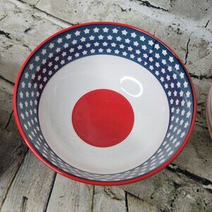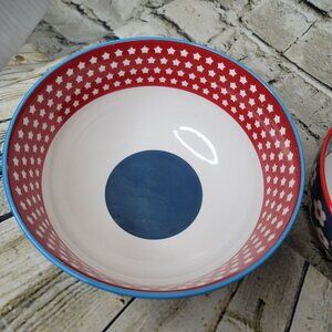 2 Christopher Vine Cotton Bud Red White Blue Flowers 2 Bowls 6” & 7”