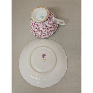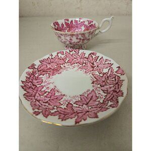 2 Coalport Maple Time Chintz Cup And Saucer Pink Mulberry Bone China 1949-1960
