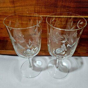 2 Colony Crystal Monet Water Glasses 7.5" etched floral blown glass flowers vtg