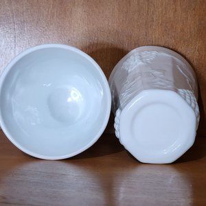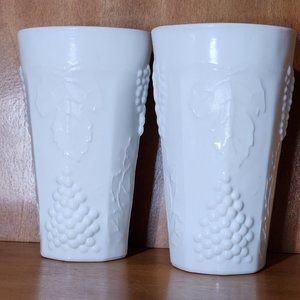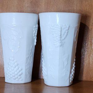 2 Colony Harvest Milk Glass Tumbler Cooler 5.75" grape leaves embossed glasses