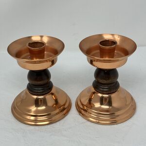 2 CopperCraft Guild Copper & Wood Taper Candle Holders Made in USA Vintage MCM