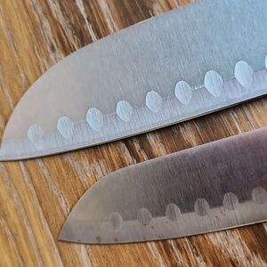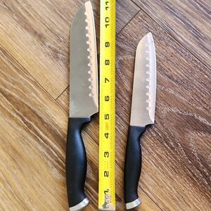 I don't think the big one has ever been used. Santoku and chefs knife?