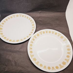 2 Corelle Luncheon Salad Plates BUTTERFLY GOLD 8 1/2" Corning Livingware 1970s