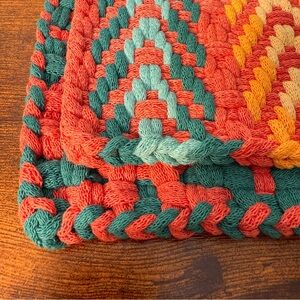 2 Cottage Kitchen Handmade Potholder Cotton Loom Hot Pad Trivet 8x8 Boho Gift