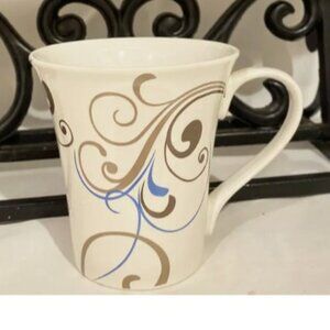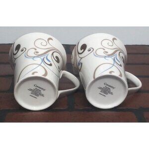 2 Coventry Coffee Mugs Porcelain Fine China CHOCO SCROLL beige blue brown PRETTY