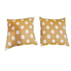 2 Crate Barrel Anellis Polka Dot Throw Pillows Golden Yellow Down Feather Fill