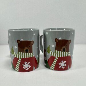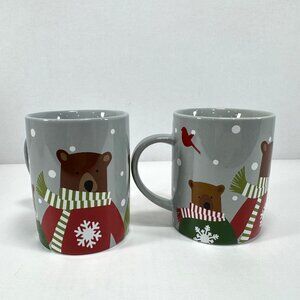 2 Crate & Barrel Christmas Mugs Coffee Cups Joan Anderson Holiday Winter Bears