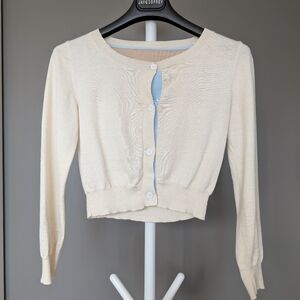 Both cardigans are cropped length with 3/4 sleeves. Cotton. Size P/XS. Fits small.