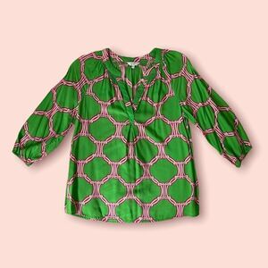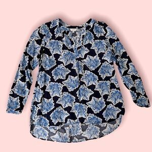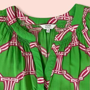 This listing is for TWO (2) crown & ivy ladies blouses, both are size SMALL. These easy-breezy flowy blouses are perfect for work, school, vacay, and everything in between! I love the preppy, beachy prints: one is a bright green (between lime and Kelly) with a hot pink and white geometric-like pattern and the other is navy with a white and blue coral pattern. Both feature 3/4 length sleeves and split collars. Exceptional preowned condition - only worn a time or 2! These are NOT silk but the style is definitely reminiscent of a Lilly Pulitzer Elsa!