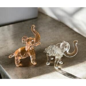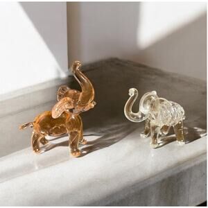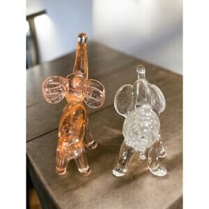 Add a touch of elegance to your home decor with these beautiful hand-blown crystal elephant figurines! This set of two includes one pink and one white elephant, each with its trunk raised for good luck. These are 2"-3"high. These paperweights are in excellent condition and will make a wonderful addition to any collection or a thoughtful gift for an elephant lover.