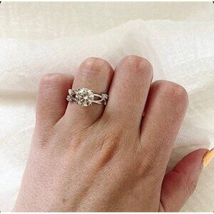 2 Ct Round Brilliant Moissanite Engagement Ring, 925 Sterling Silver, Nature