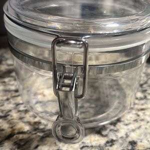 2 cup acrylic storage container with freshness seal lid that locks with latch.